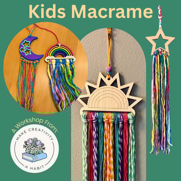 Use colorful yarn and a wood frame to make a macrame wall hanging! We will cut lengths of colored yarn and loop them around our macrame frame. Choose your own colors and patterns to freely express your creativity! Bead embellishments will also be available to make your macrame even more awesome!