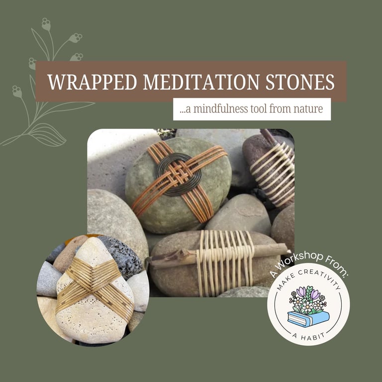 Meditation stones can be beautiful objects that remind you to pause for a moment and be present. They can be part of a meditation practice. Or they can simply be a way of connecting with the natural world. Wrap stones in leather and twine, incorporating other natural objects like twigs, stones, or shells to create beautiful natural objects. Make multiple wrapped stones.